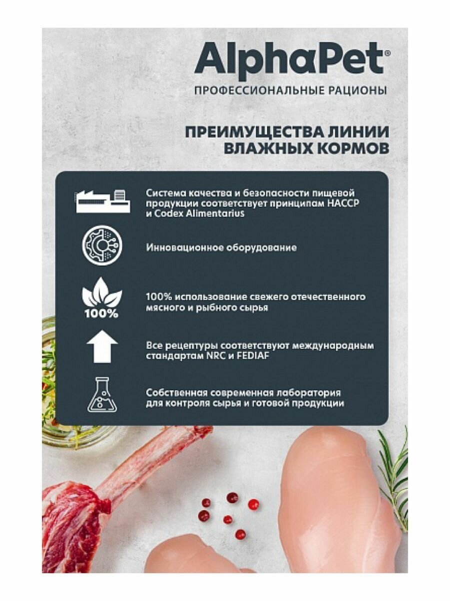 Влажный полнорационный корм для взрослых стерилизованных кошек AlphaPet Superpremium, Ягненок и сердце мясные кусочки в желе, 80г * 15шт