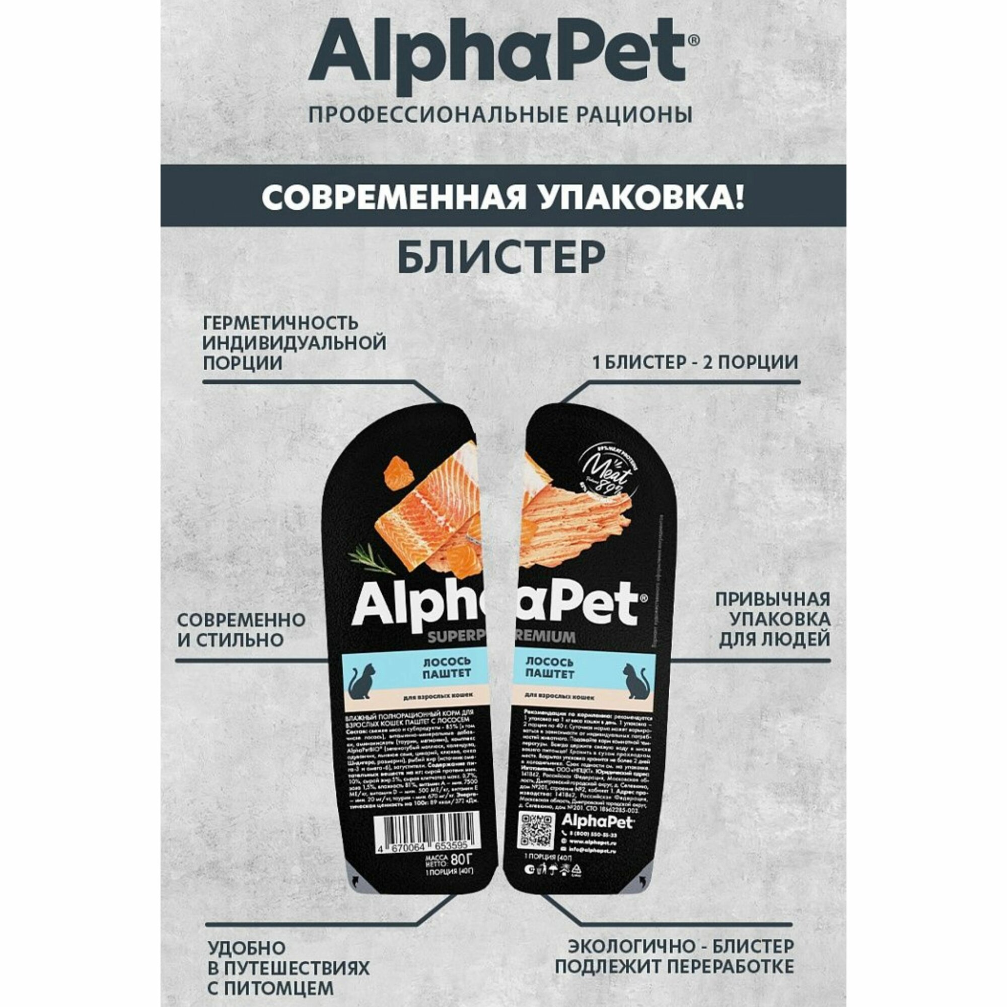 СохранитьВлажный корм для кошек AlphaPet Superpremium паштет с лососем,упаковка 15 шт х 80 гр интересное: