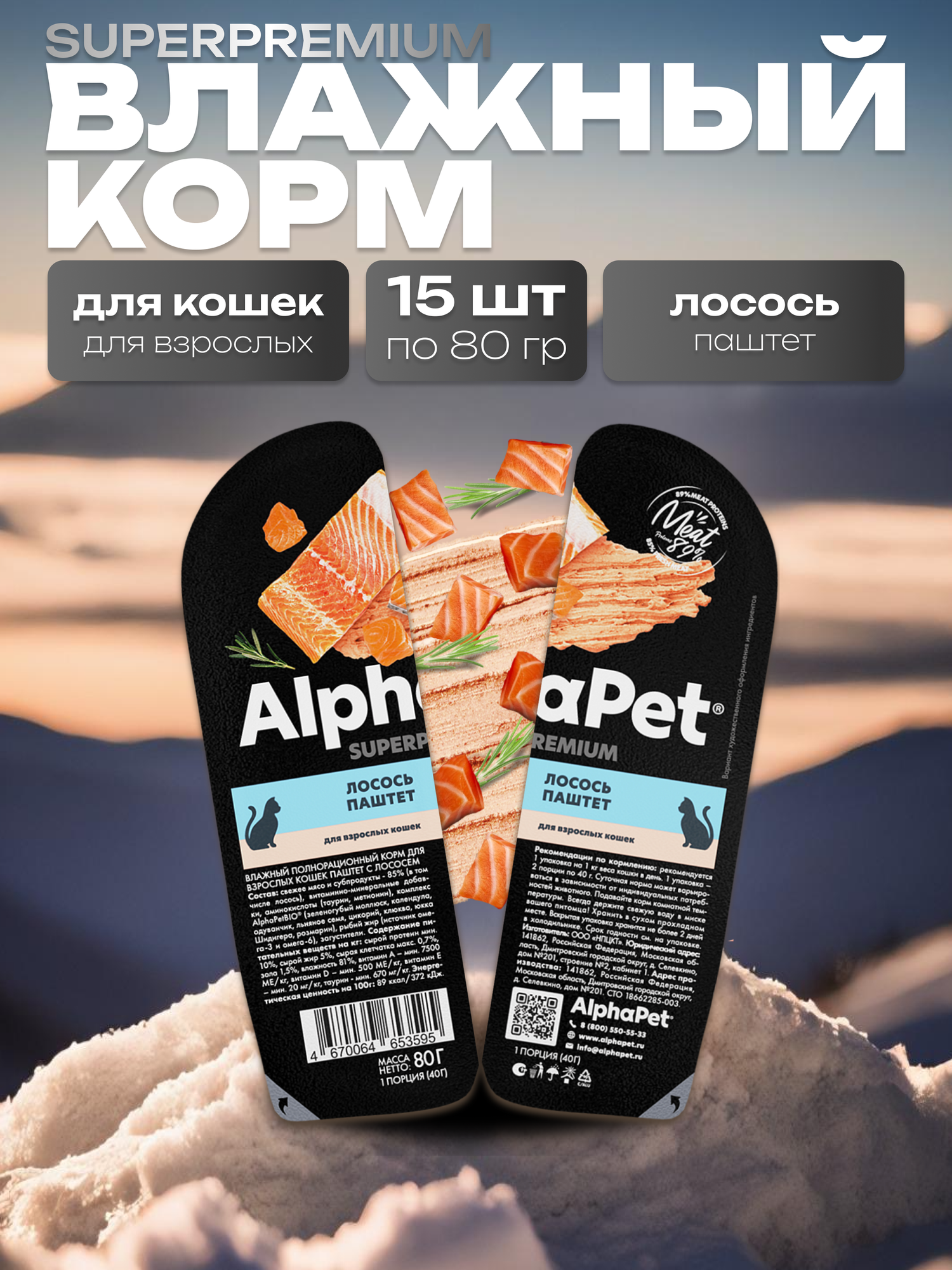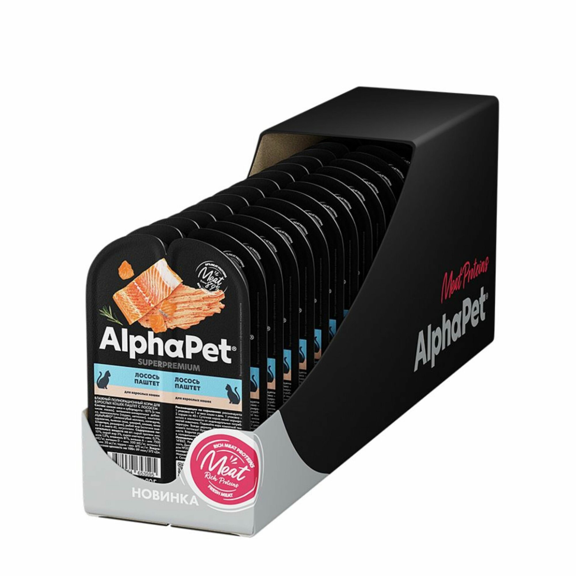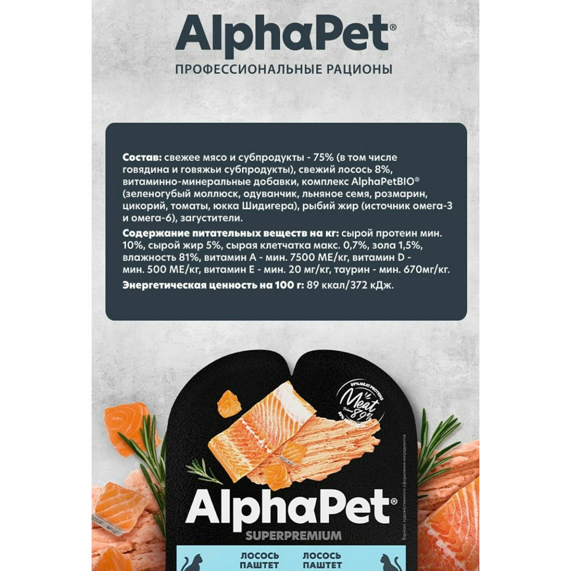 Купить Влажный корм для кошек AlphaPet Superpremium паштет с лососем,упаковка 15 шт х 80 гр