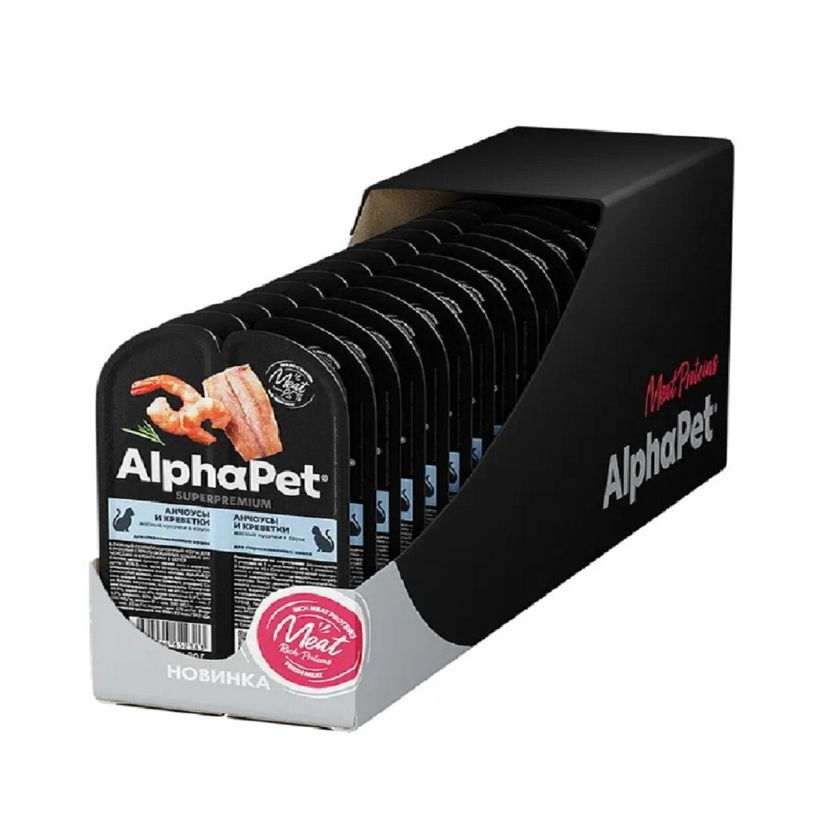 Купить Влажный корм для кошек стерилизованных AlphaPet Superpremium с анчоусами и креветками в соусе упаковка 15 шт * 80 гр