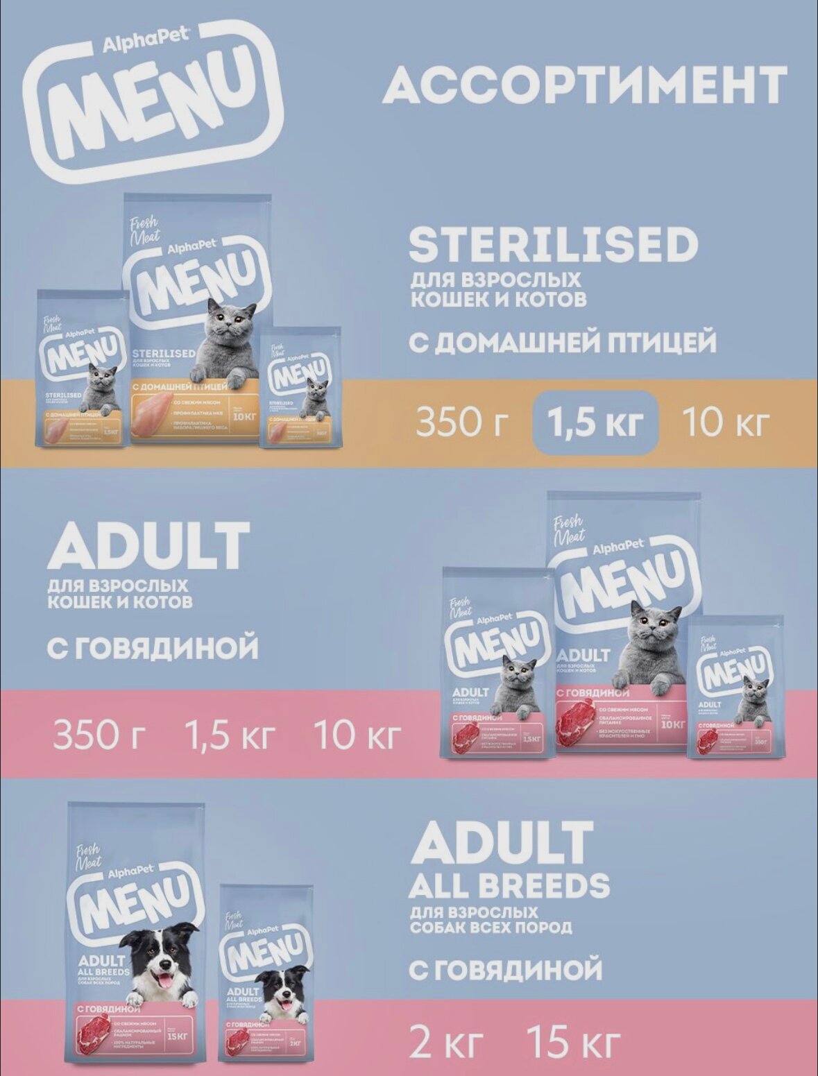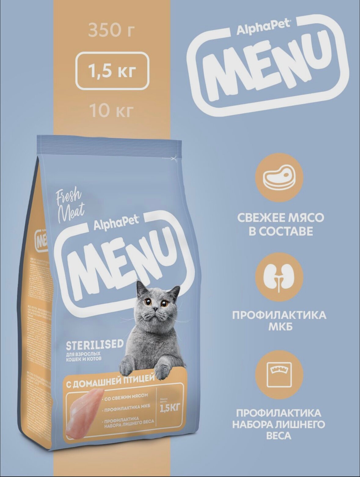 Купить ALPHAPET MENU Сухой корм для стерилизованных кошек с птицей 1,5 кг