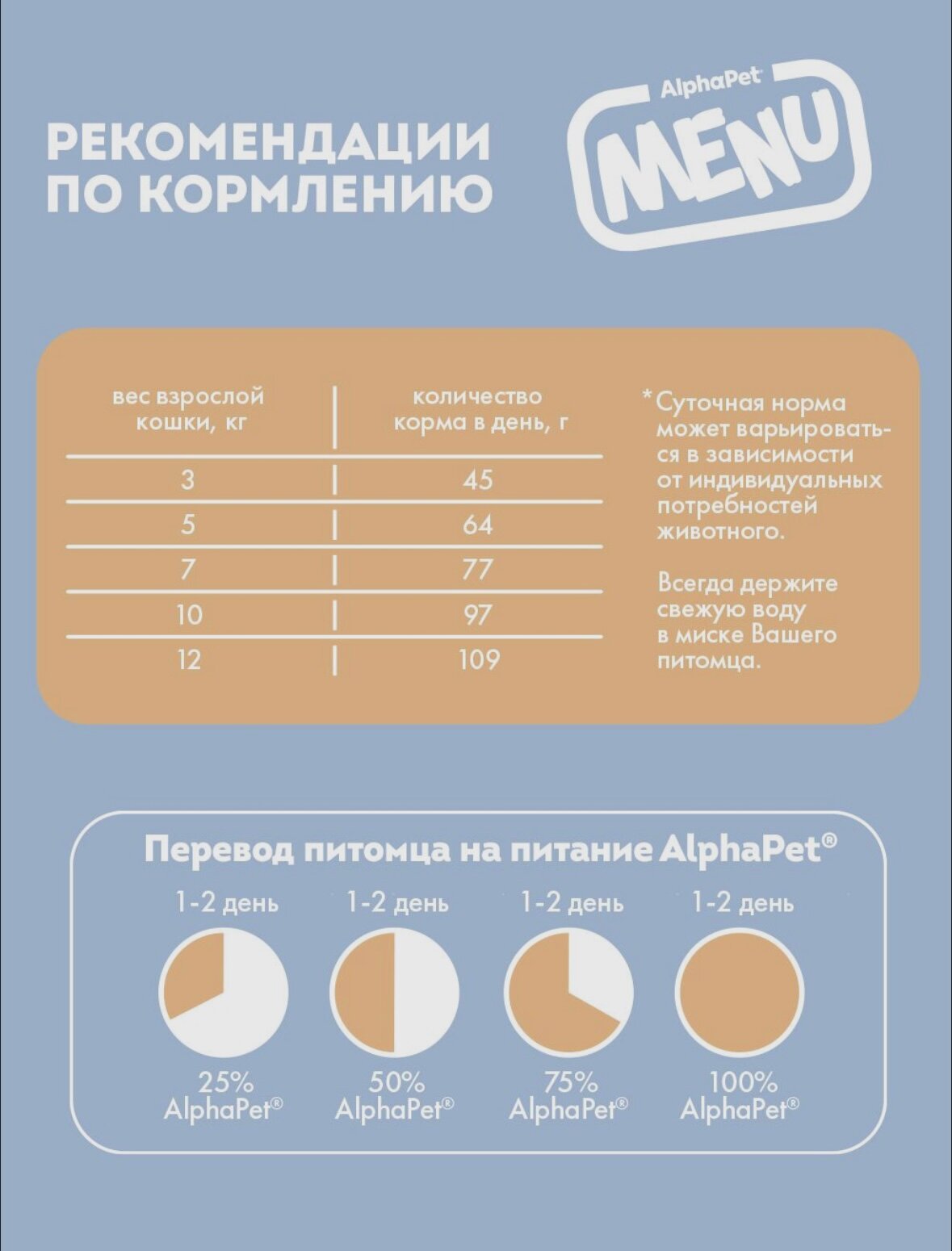 | Дополнительная информация | корм следует давать сухим или увлажненным теплой водой. У животного всегда должен быть доступ к миске со свежей водой. |