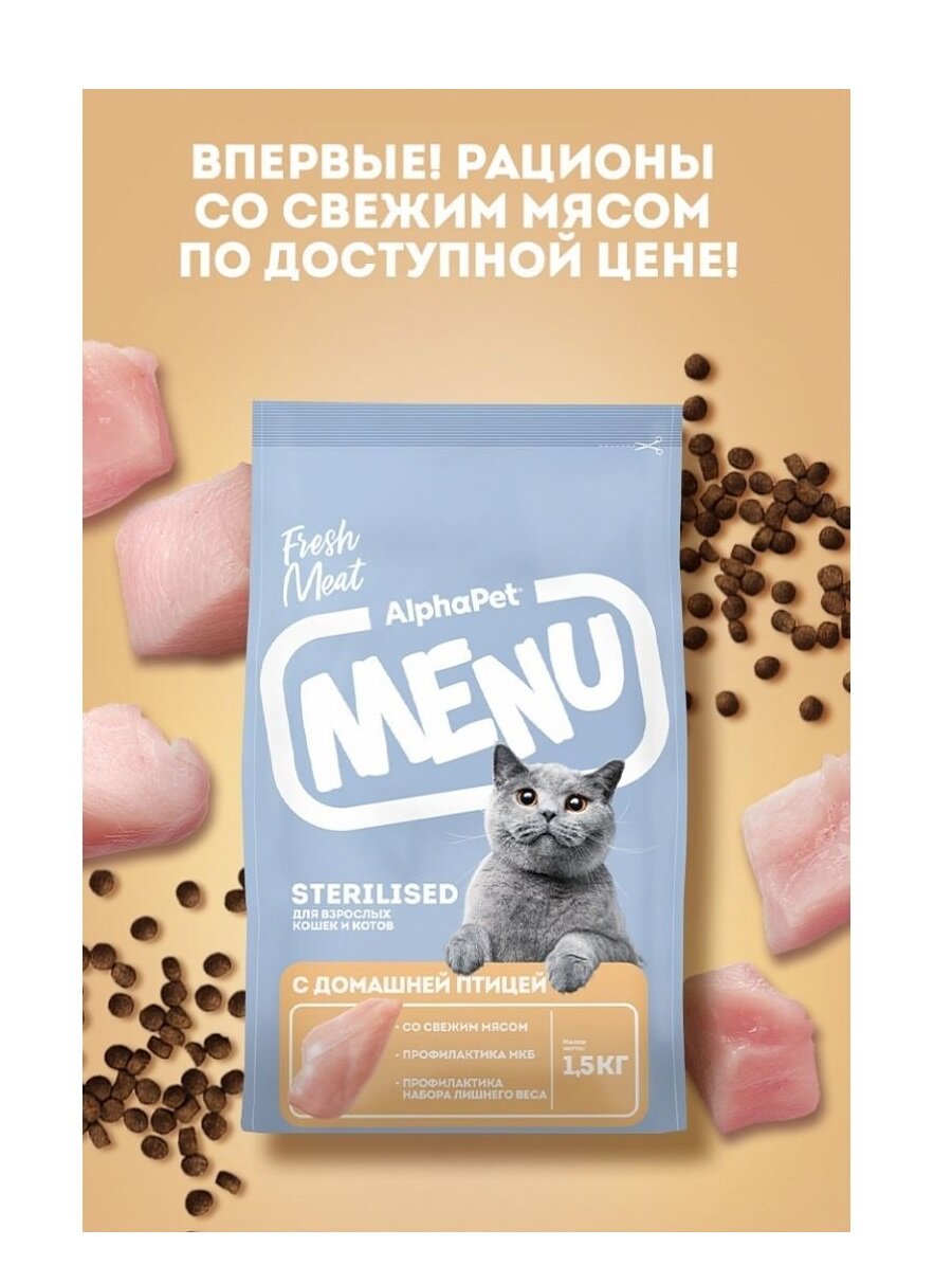 Сухой корм для кастрированных котов и стерилизованных кошек AlphaPet MENU с домашней птицей, 1,5кг