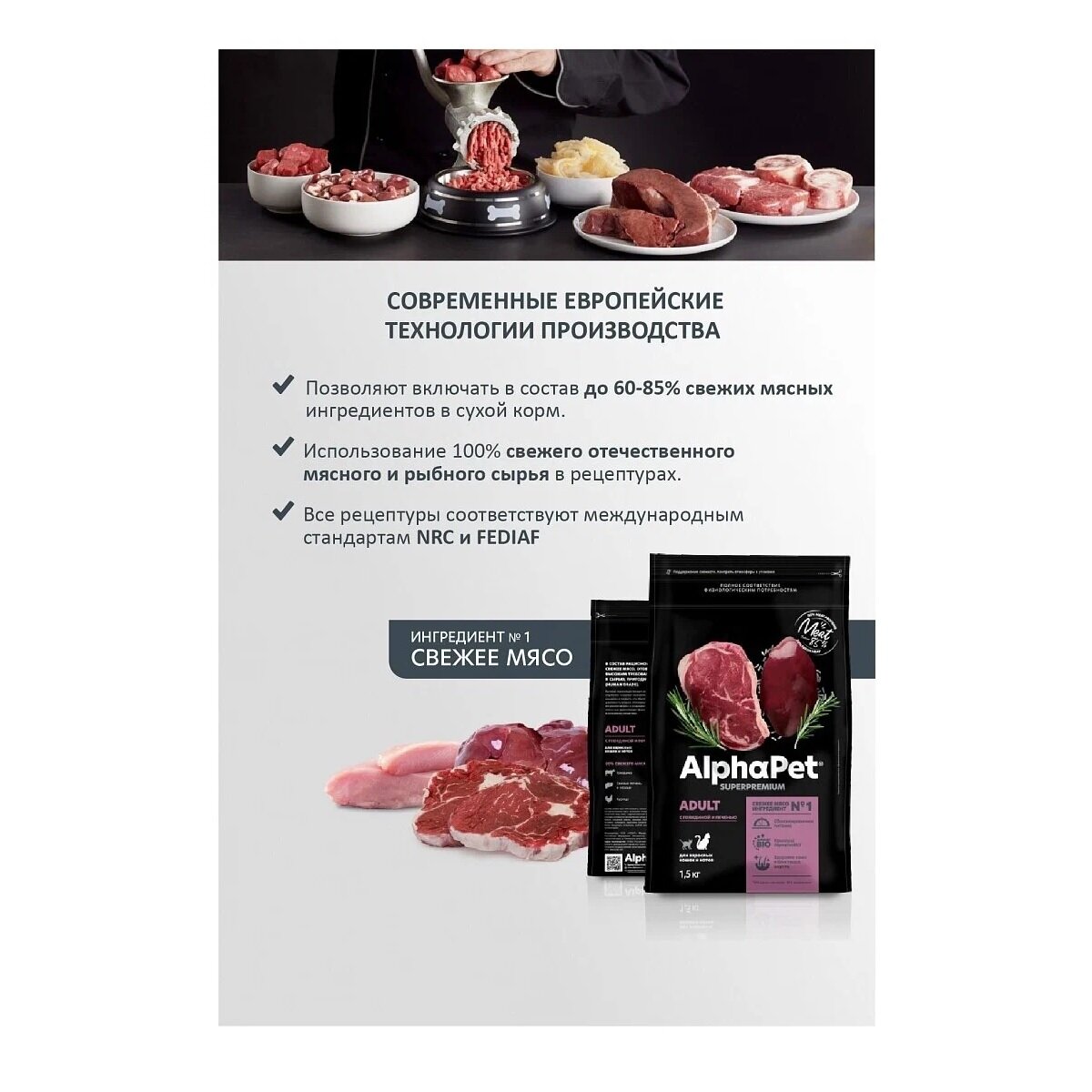 Сухой полнорационный корм AlphaPet (АльфаПет) Superpremium для взрослых стерилизованных кошек и котов, с ягненком и индейкой, 1,5 кг