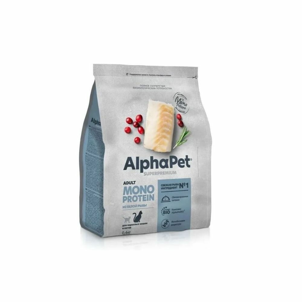 ALPHAPET SUPERPREMIUM MONOPROTEIN Сухой корм для взрослых кошек из белой рыбы 400 г (2 шт)