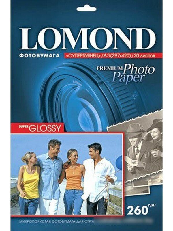 Фотобумага Lomond Одностороняя Супер Глянцевая, 260г/м2, A3/20л.