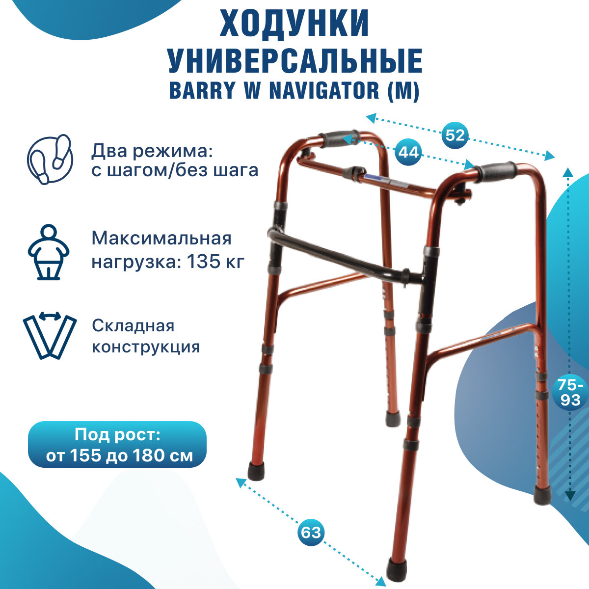Купить Опоры-ходунки W Navigator (М) складные медицинские для взрослых, пожилых и инвалидов под рост 155-180 см Ходули Barry с шагом/без шага
