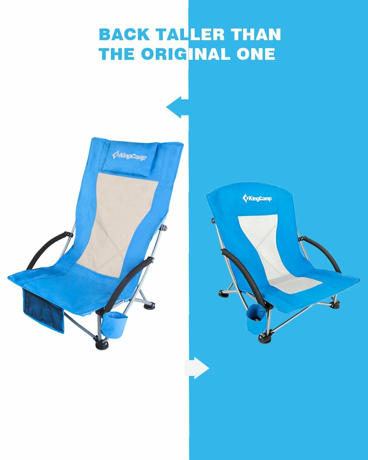 Кресло туристическое раскладное со спинкой KingCamp KC1901 Portable High Sling Chair, синий
