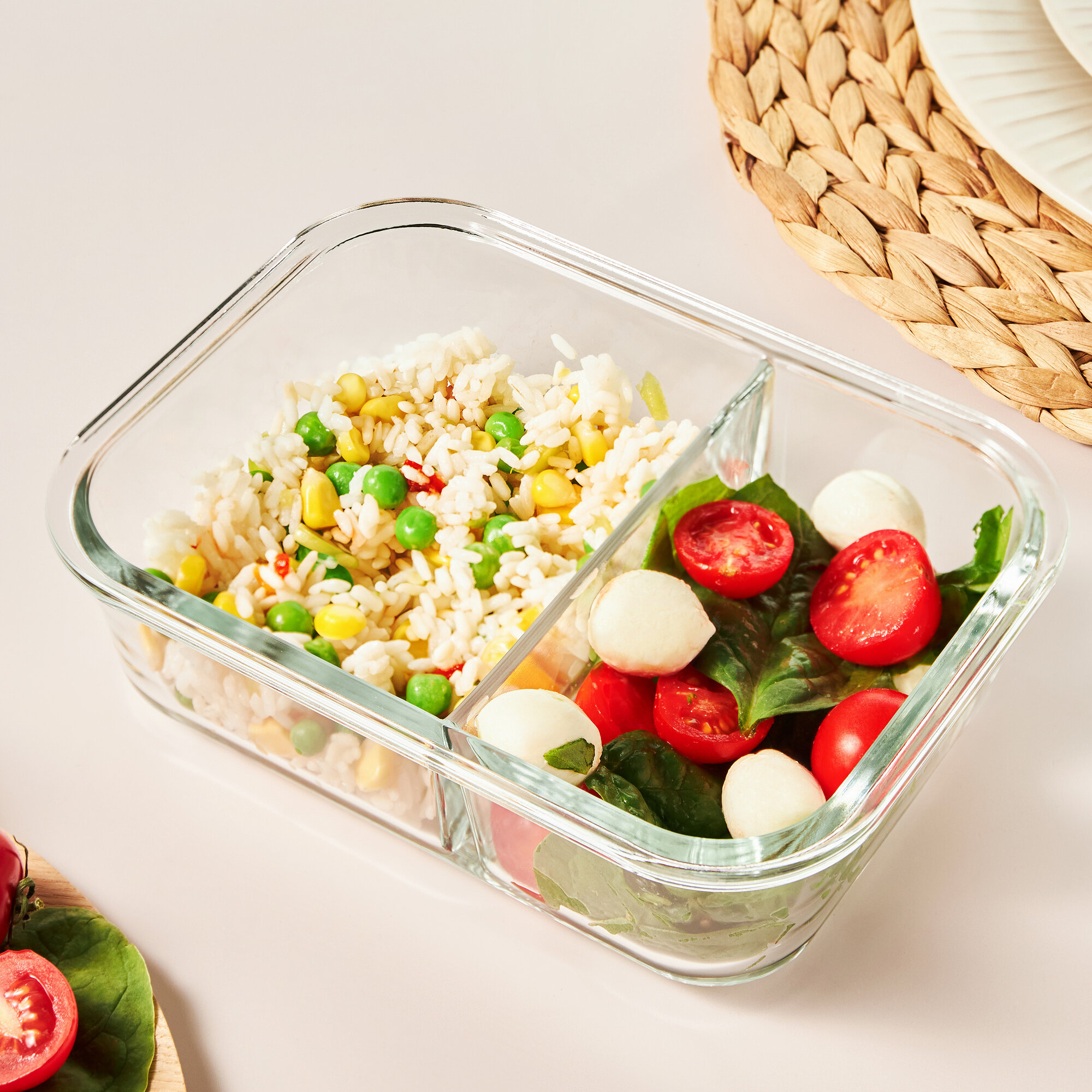 Контейнер с герметичным разделителем из термостойкого стекла, 950 мл, стеклянный лоток для еды, ланч-бокс