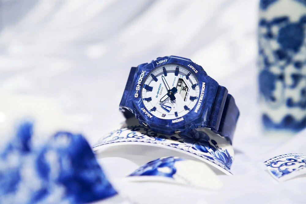 Наручные часы Casio G-shock GA-2100BWP-2A синие с белым циферблатом интересное: