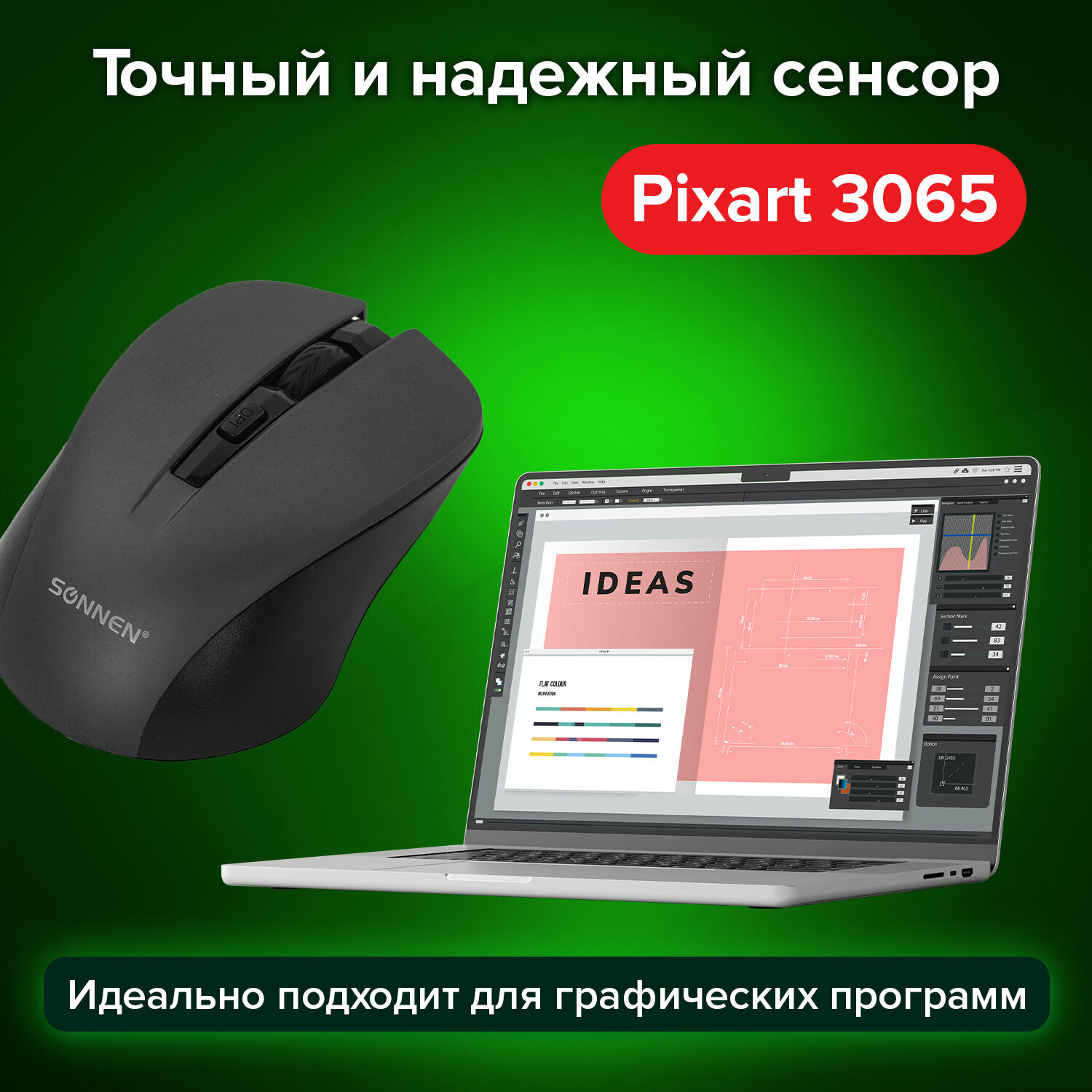 Мышь беспроводная с бесшумным кликом SONNEN V18, USB, 800/1200/1600 dpi, 4 кнопки, черная, 513514