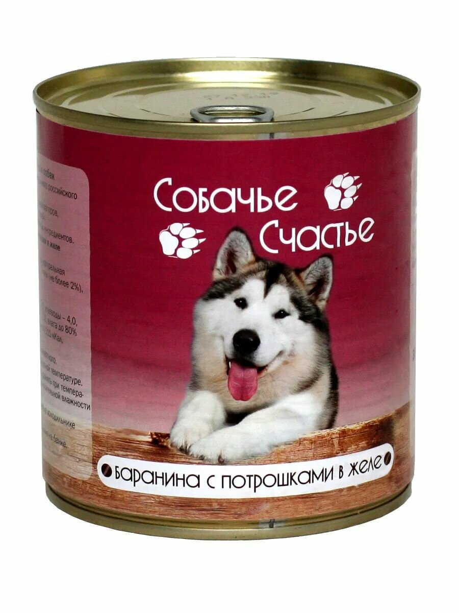 Консервированный корм для собак, Собачье Счастье, баранина с потрошками в желе, 750 г, 1 шт.