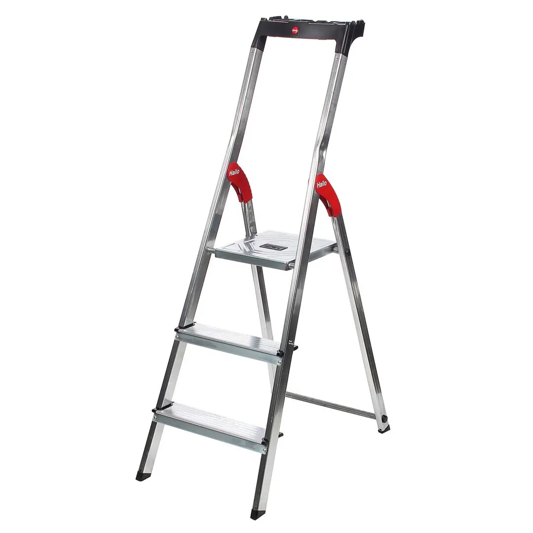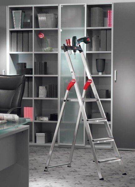 Стремянка алюминиевая Hailo 3 ступени 8160-307, лоток для инструментов, максимальная нагрузка 150 кг