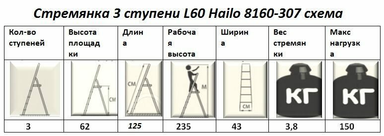 Алюминиевая стремянка Hailo L60 StandardLine 3 ступени 8160-307 интересное: