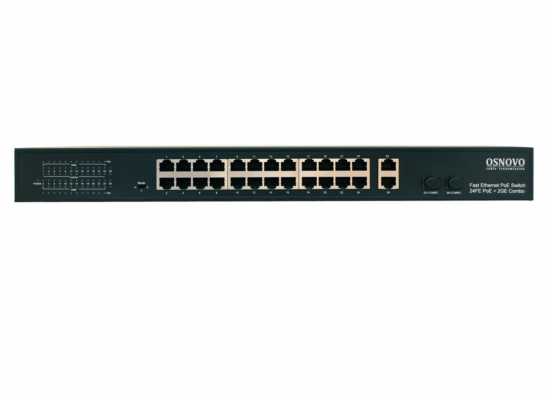 Коммутатор Osnovo SW-62422400W 26x100Mb 24PoE 400W неуправляемый