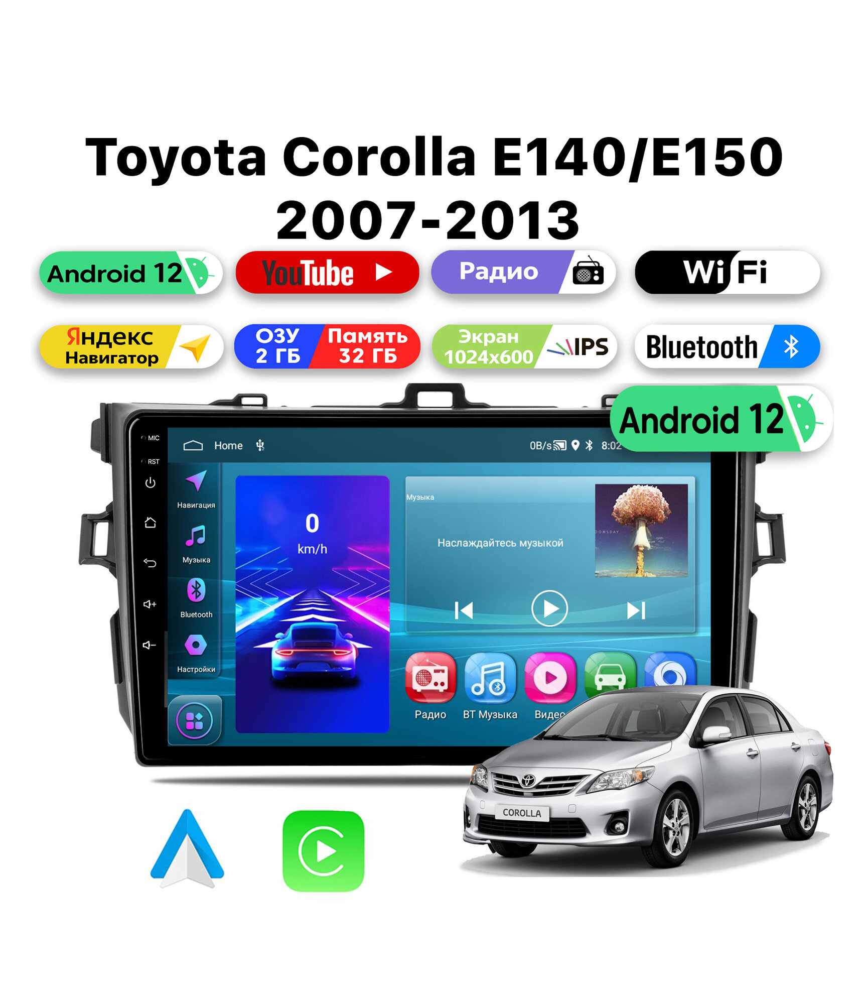 Купить Автомагнитола для Toyota Corolla E140/E150 (2007-2013), Android 12, 2/32 Gb, Wi-Fi, Bluetooth, Hands Free, разделение экрана, поддержка кнопок на руле