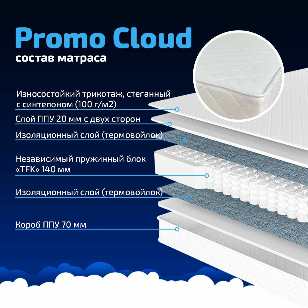 Матрас с независимым пружинным блоком 140х200 высота 20 см серии Promo CLOUD, жесткость - мягкий