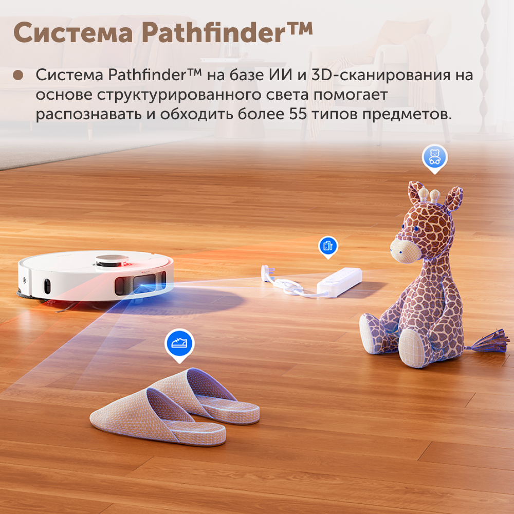 | Плюсы: | Приятно удивлен, что даже в первый запуск (когда AI делает первый план помещения) качество уборки на высоте. У меня черный пол и многие роботы-пылесосы на нем теряются + дома сибирская кошка – пылесос убрал все близко к идеальному и помыл. В меру негромкий. Разговаривает на русском. Приложение, на мой взгляд, сыровато – но все основные функции выполняет. |