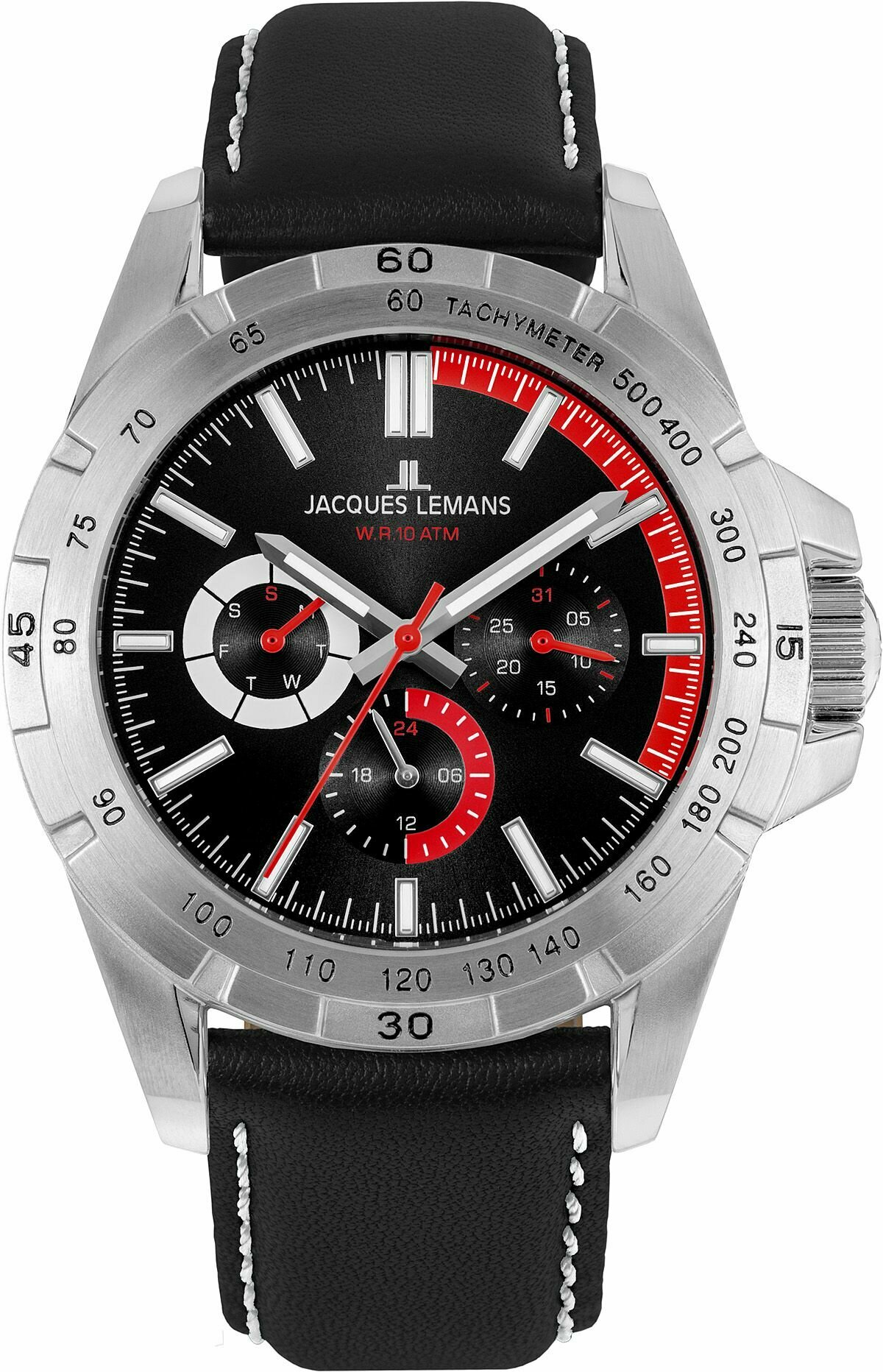 Купить Наручные часы Jacques Lemans 42-11A, мужские кварцевые спортивные часы Жак Леман с датой и днем недели на кожаном ремне