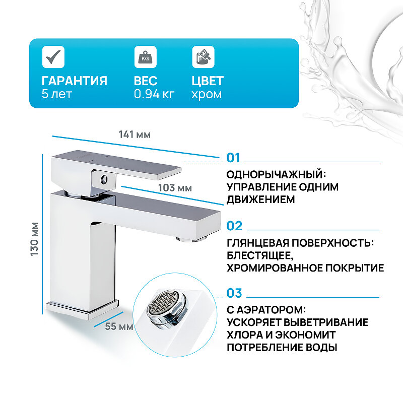 Смеситель для раковины (умывальника) Gappo Roiey G1039 хром