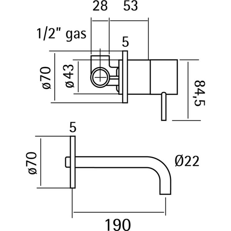 Смеситель Cisal Xion для раковины на 2 отверстия из стены, излив 190 мм, внешняя и внутренняя части в комплекте, цвет: нержавеющая сталь XI002510D1