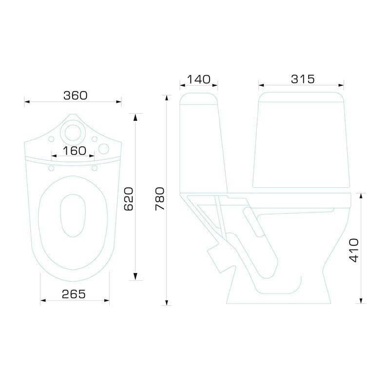 комплектность: чаша; бачок с крышкой и арматурой; сиденье (полипропилен) с креплениями; крепления к полу; паспорт – гарантийный талон