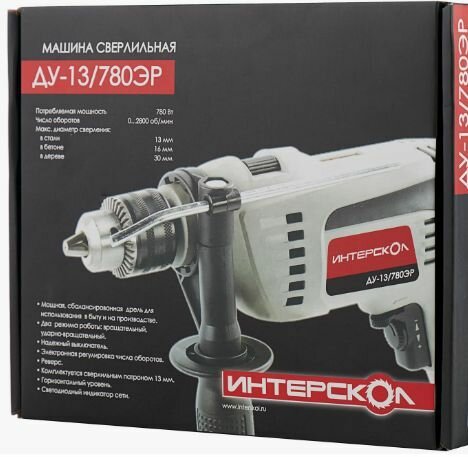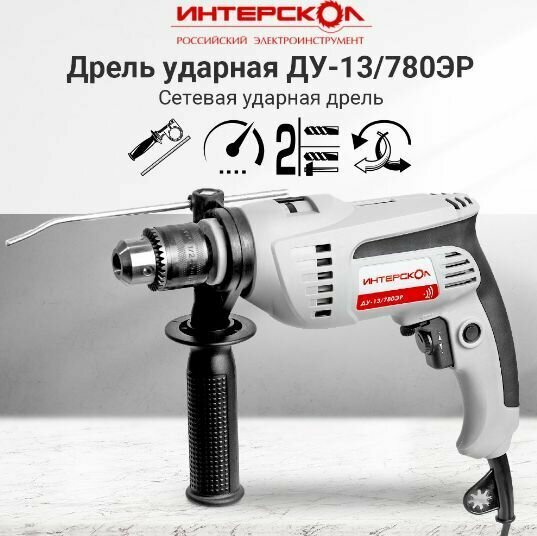 Купить Дрель ударная электрическая ИНТЕРСКОЛ ДУ-13/780ЭР (780Вт, ключ патрон 13мм, 2кг, коробка)