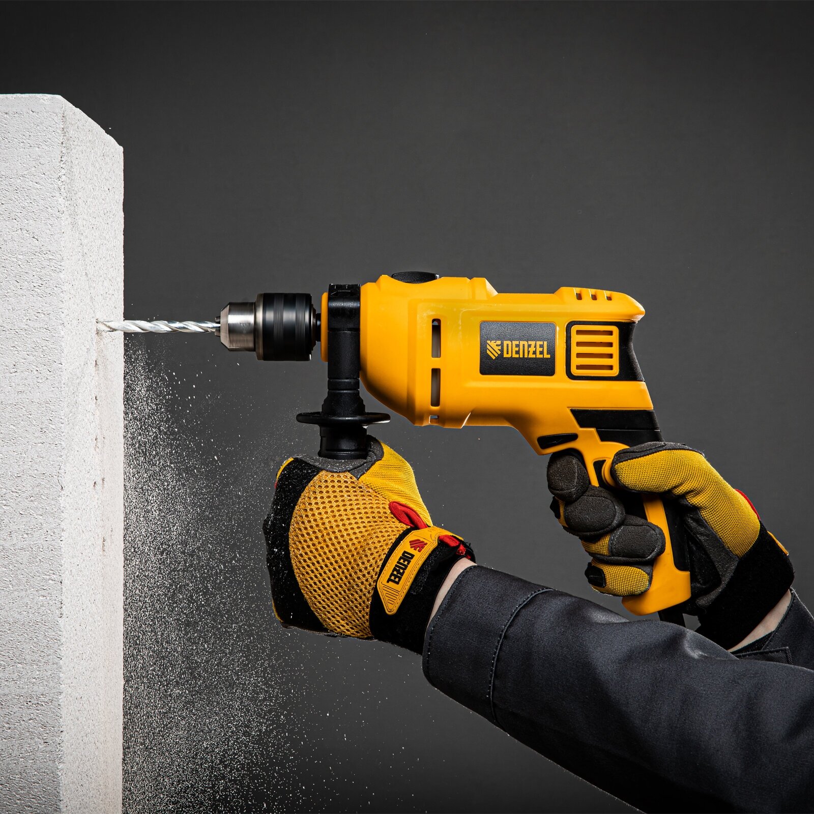 Ударная дрель Denzel ID-650, 650 Вт светло-желтый