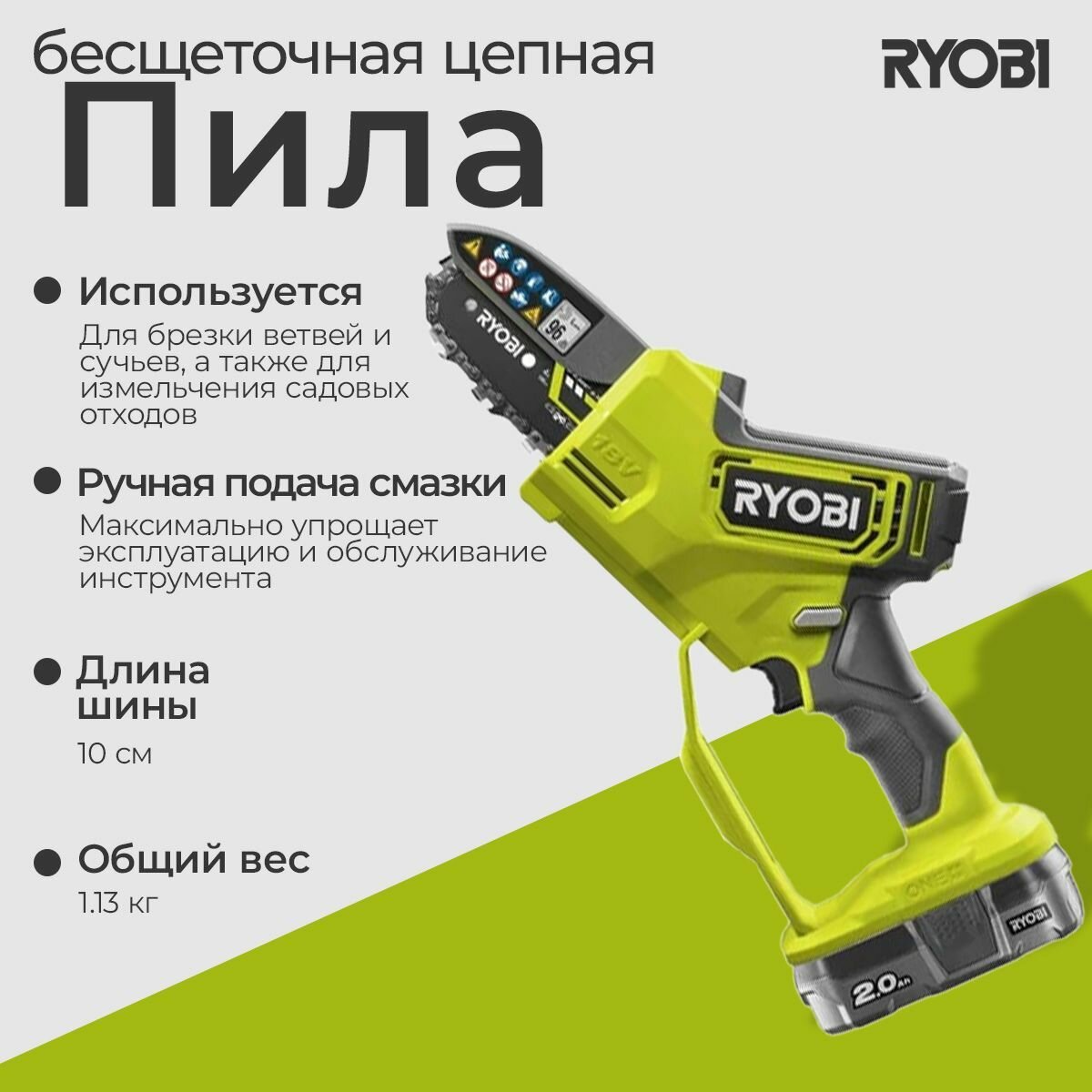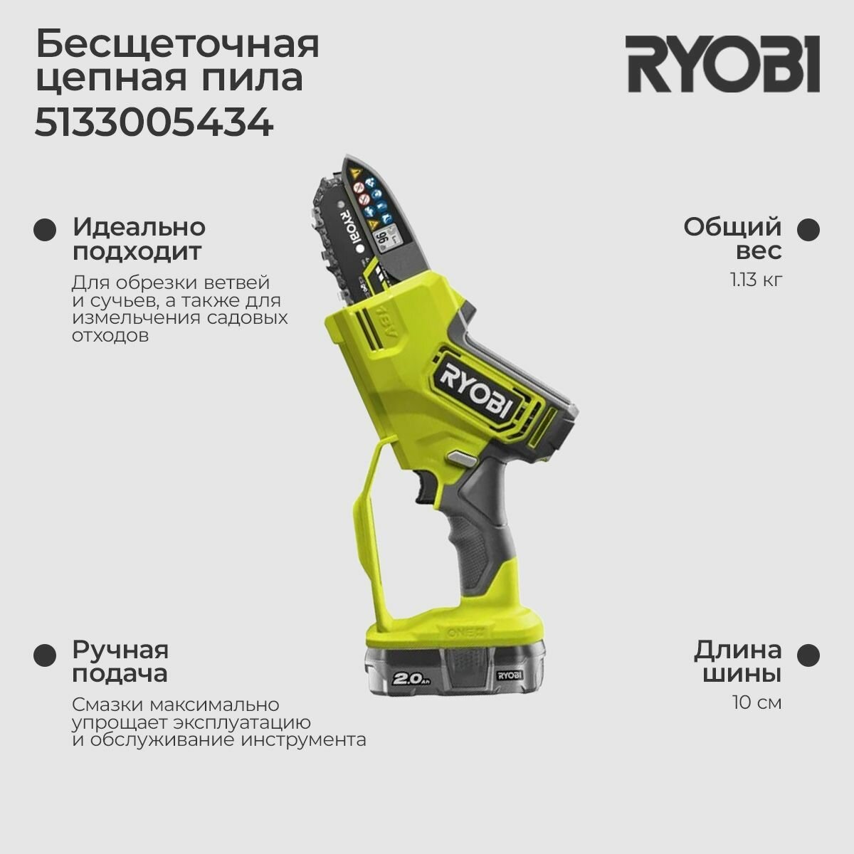СохранитьБесщеточная цепная пила Ryobi ONE+ 18В RY18PSX10A-120 10 см 5133005434 интересное: