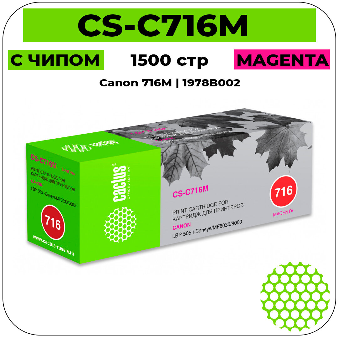 Картридж Cactus CS-C716M совместимый лазерный картридж (Canon 716M - 1978B002) 1500 стр, пурпурный