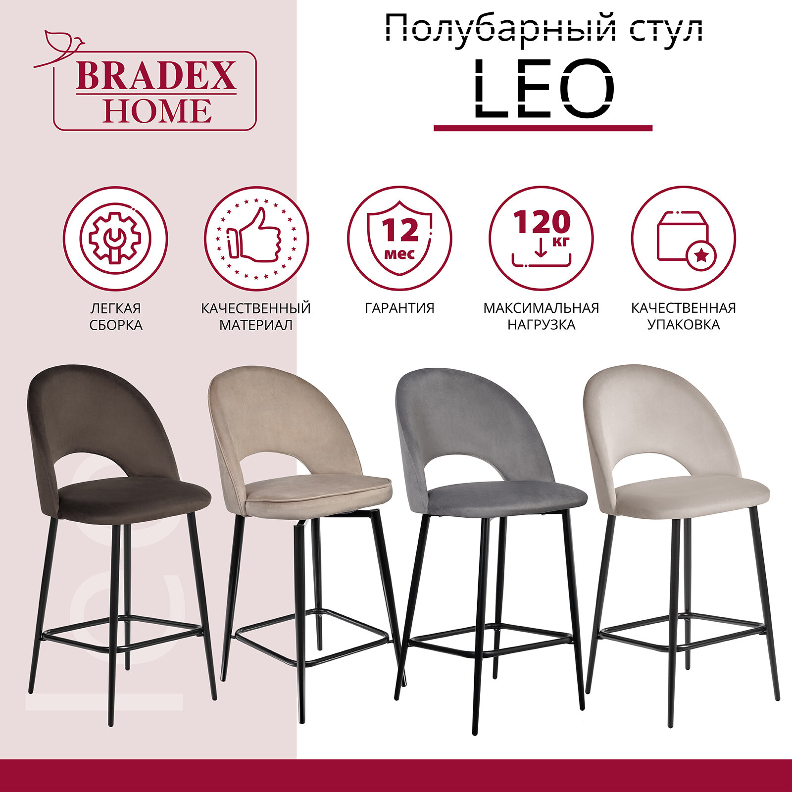 Стул полубарный BRADEXHOME Leo Кофейный Размеры: Высота 990мм Глубина 490мм Ширина 560мм