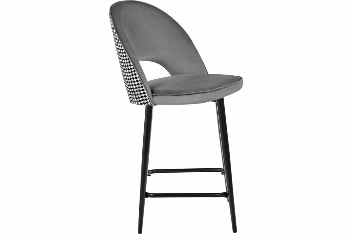 Стул полубарный Leo STOOL MARKET черный, серый, металл, велюр, мягкое сиденье, без подлокотников
