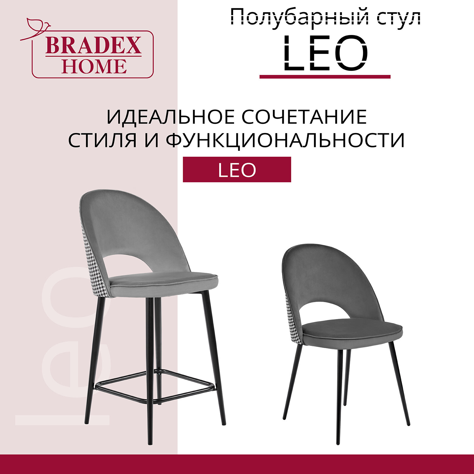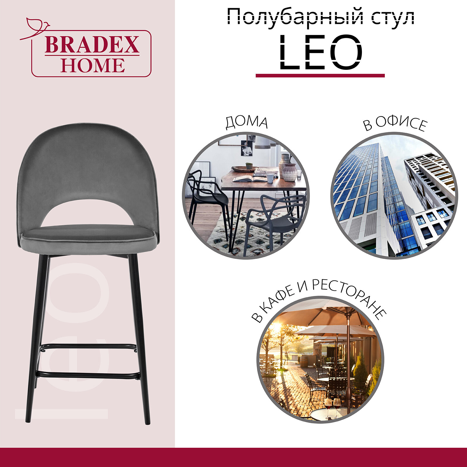 Стул полубарный Bradex Leo темно-серый (RF 0049)
