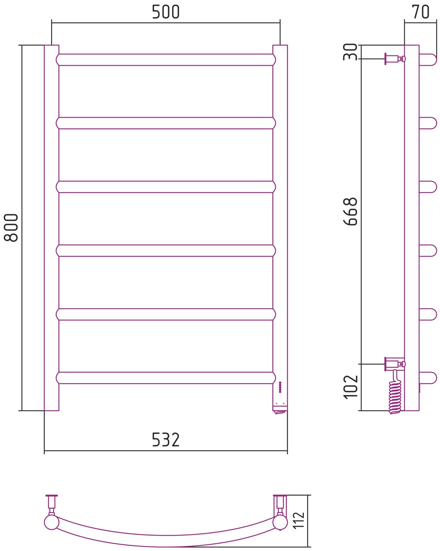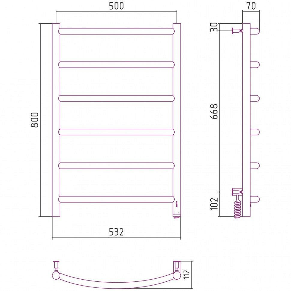 Полотенцесушитель Электрический Тругор Пэк сп 5 П 60х50 черный ВГП