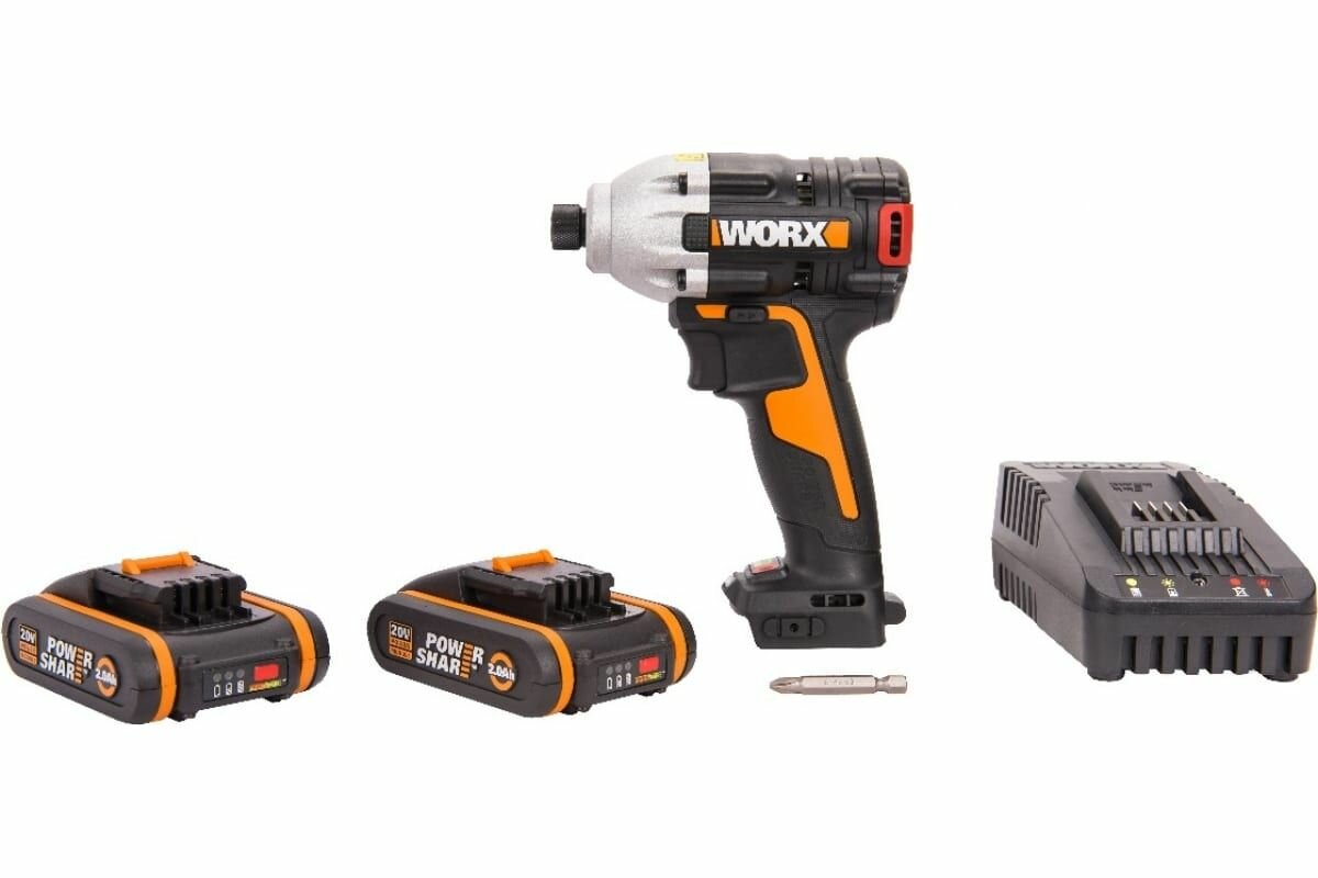 Винтоверт ударный WORX WX261 20V аккумуляторный с двумя 2Ач батареями, 2А зарядкой и кейсом