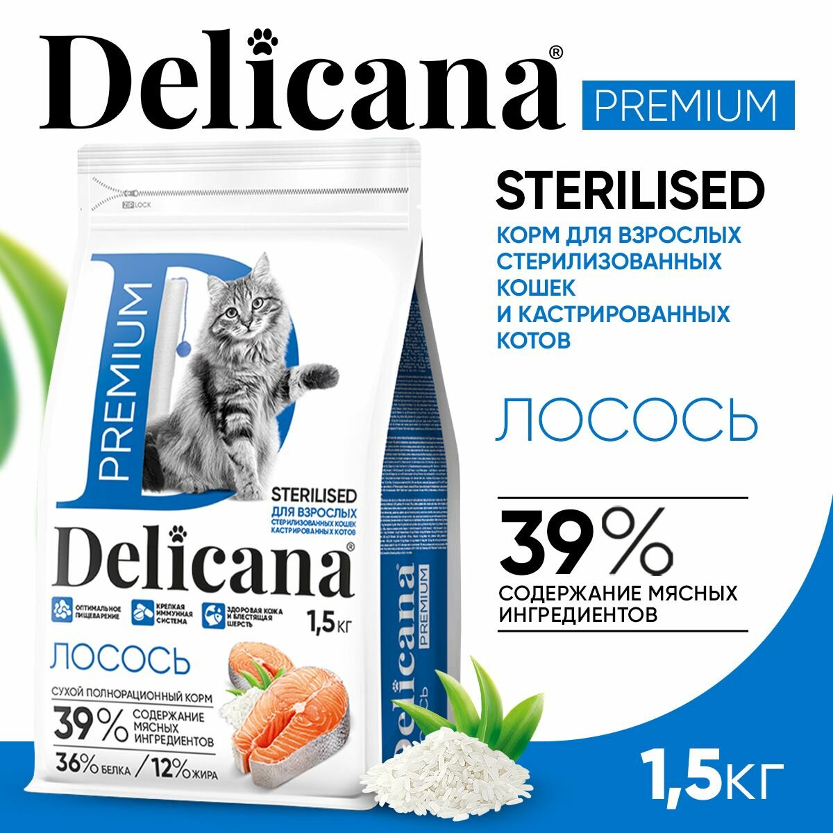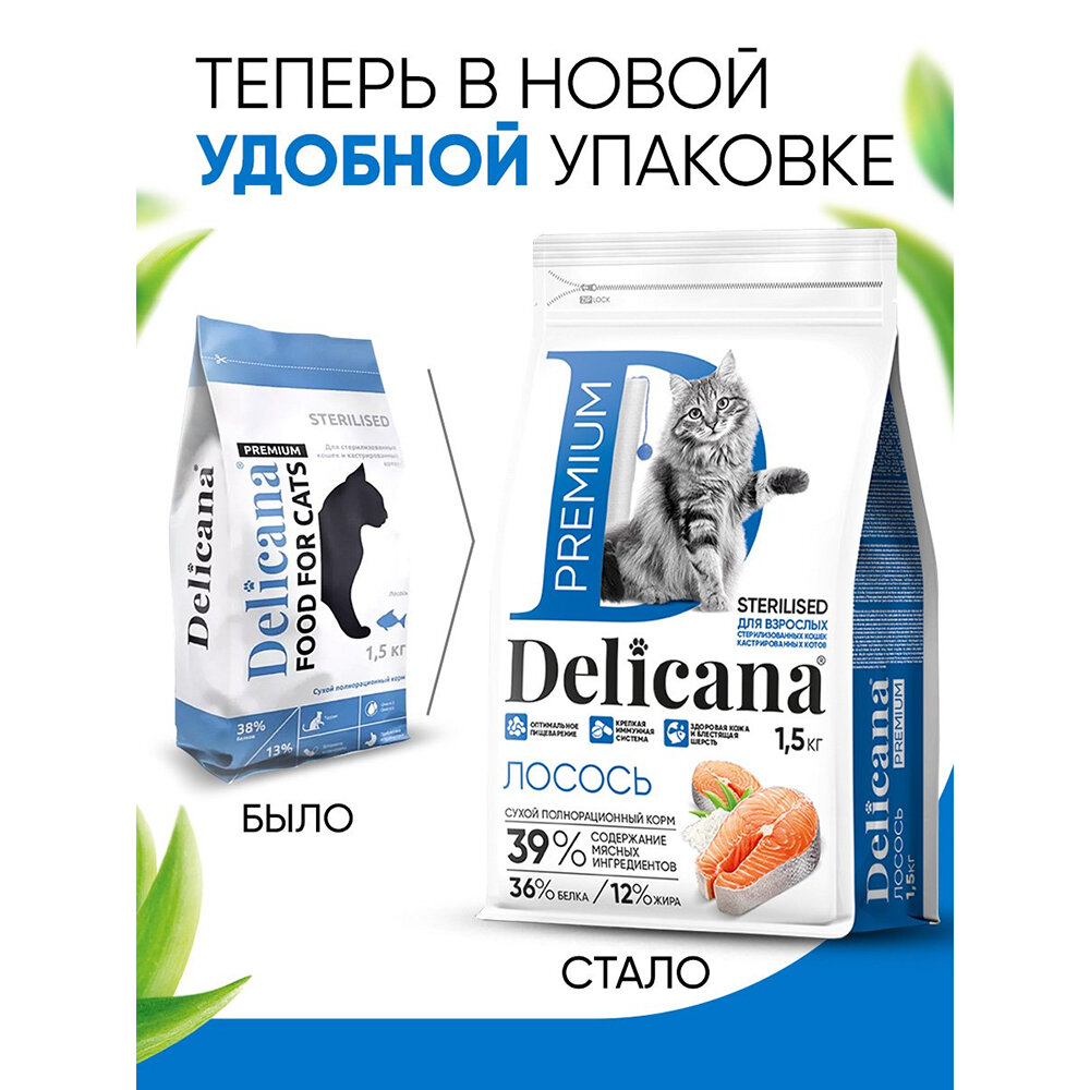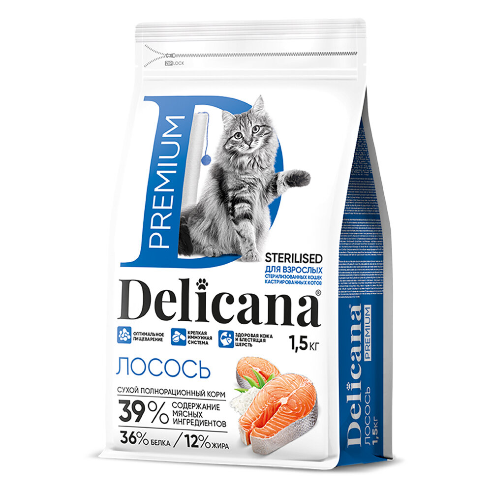 DELICANA корм для стерилизованных кошек (лосось) (вес: 1.5, упаковка: 1,5 кг.)