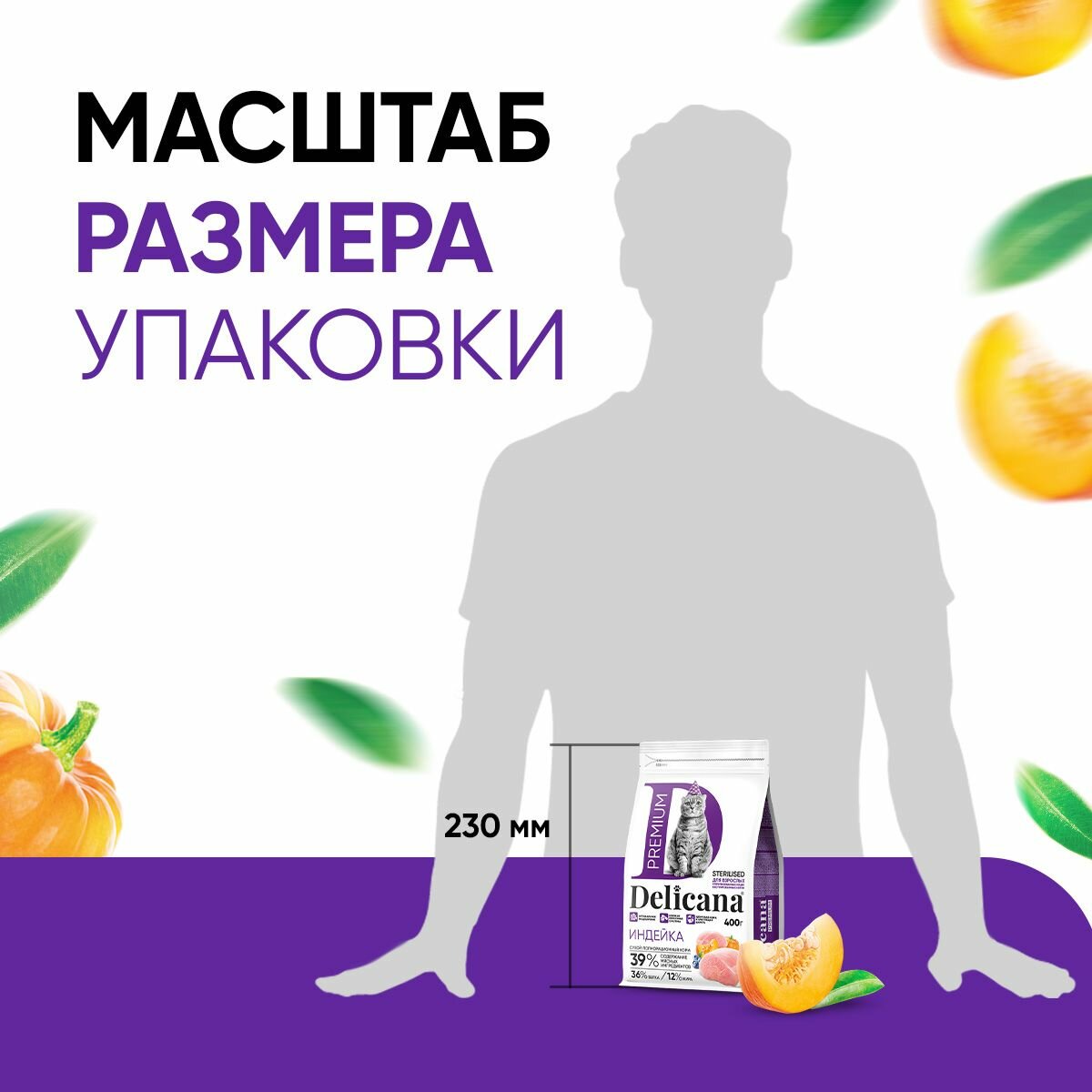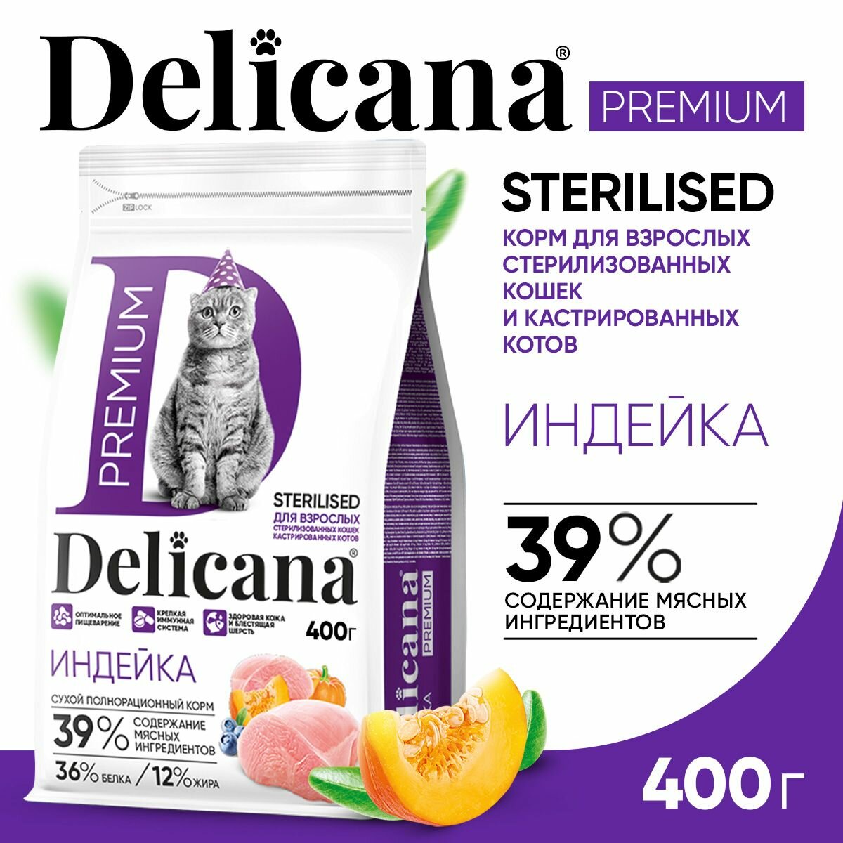Купить Корм сухой Delicana для стерилизованных кошек / кастрированных котов Индейка 400 гр