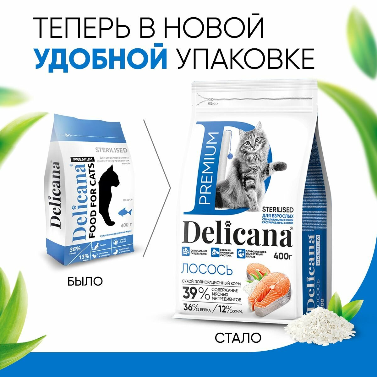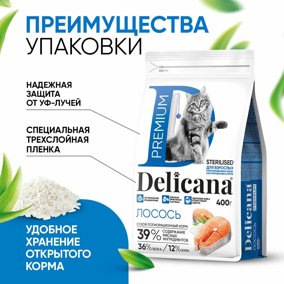 DELICANA корм для стерилизованных кошек (лосось) (вес: 0.4, упаковка: 400 гр.)