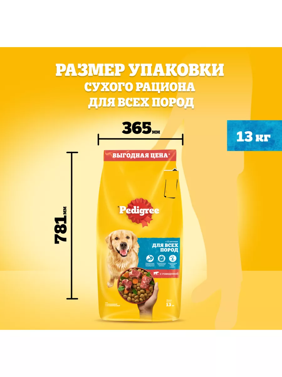 Сухой корм Pedigree для собак всех пород, говядина, 13 кг