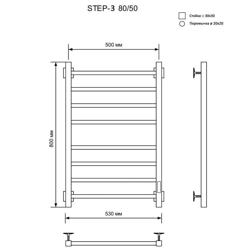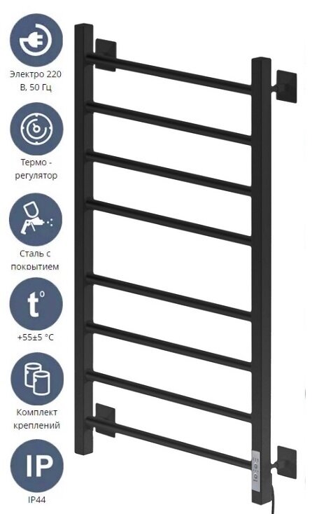 Купить Полотенцесушитель Электрич.кабельный Ника STEP-3 80/50 RAL9005 черный матовый U