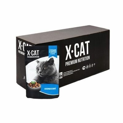 X-CAT для взрослых кошек с сельдью и форелью в соусе (85 гр х 24 шт)