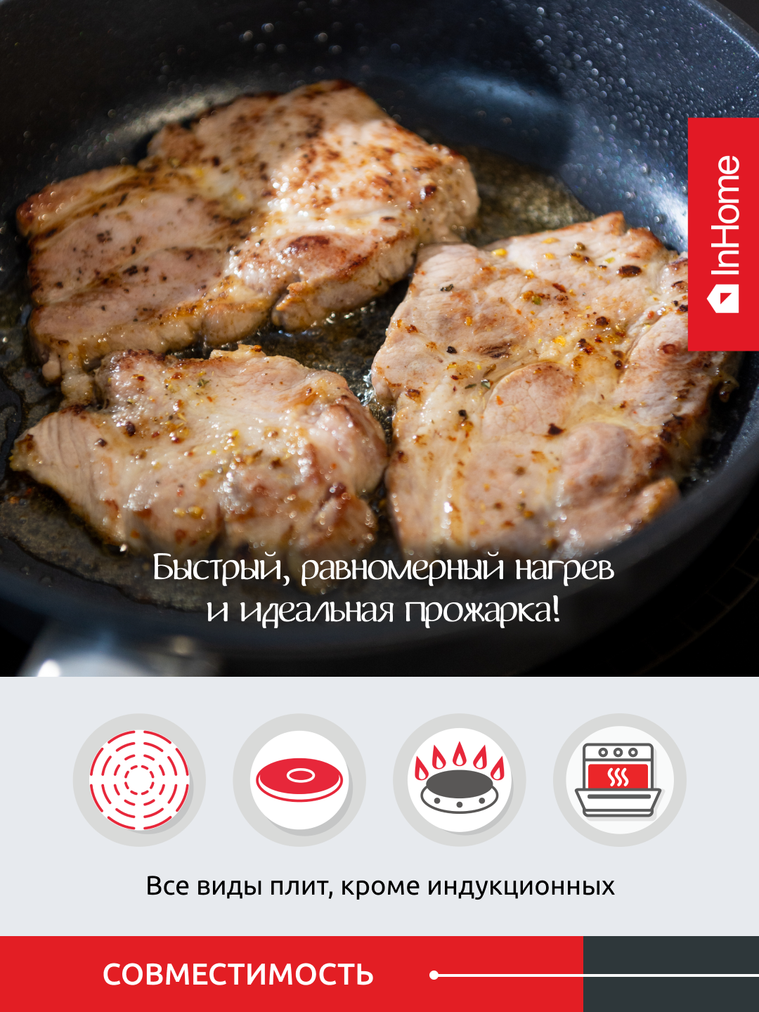 Литая сковорода с антипригарным покрытием, съемная ручка, InHome IN0326/МR0