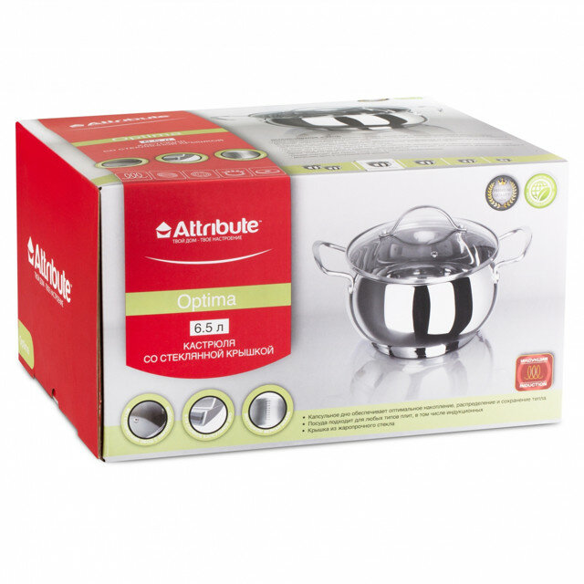 Кастрюля с крышкой Attribute Optima 6.5л (aso124)