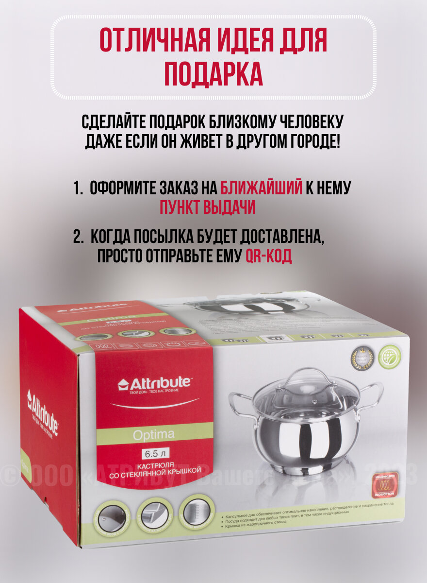 Кастрюля с крышкой OPTIMA 6.5л ATTRIBUTE STEEL