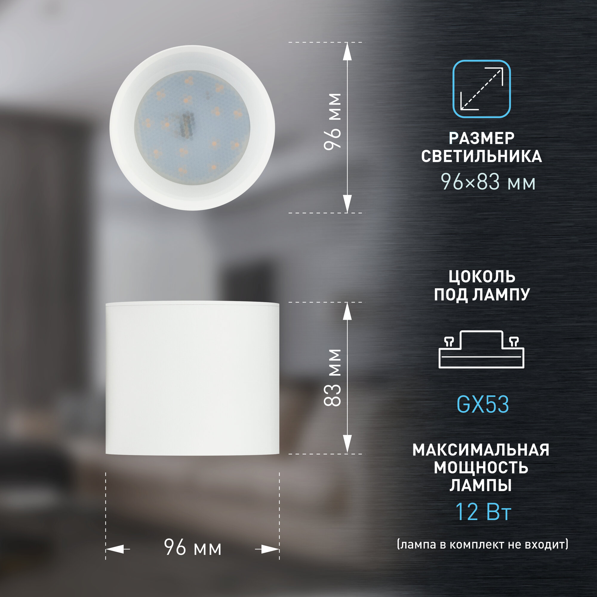 Светильник OL8 под лампу GX53 D96*80мм накладной белый металл 230В IP20 Б0048535 ЭРА