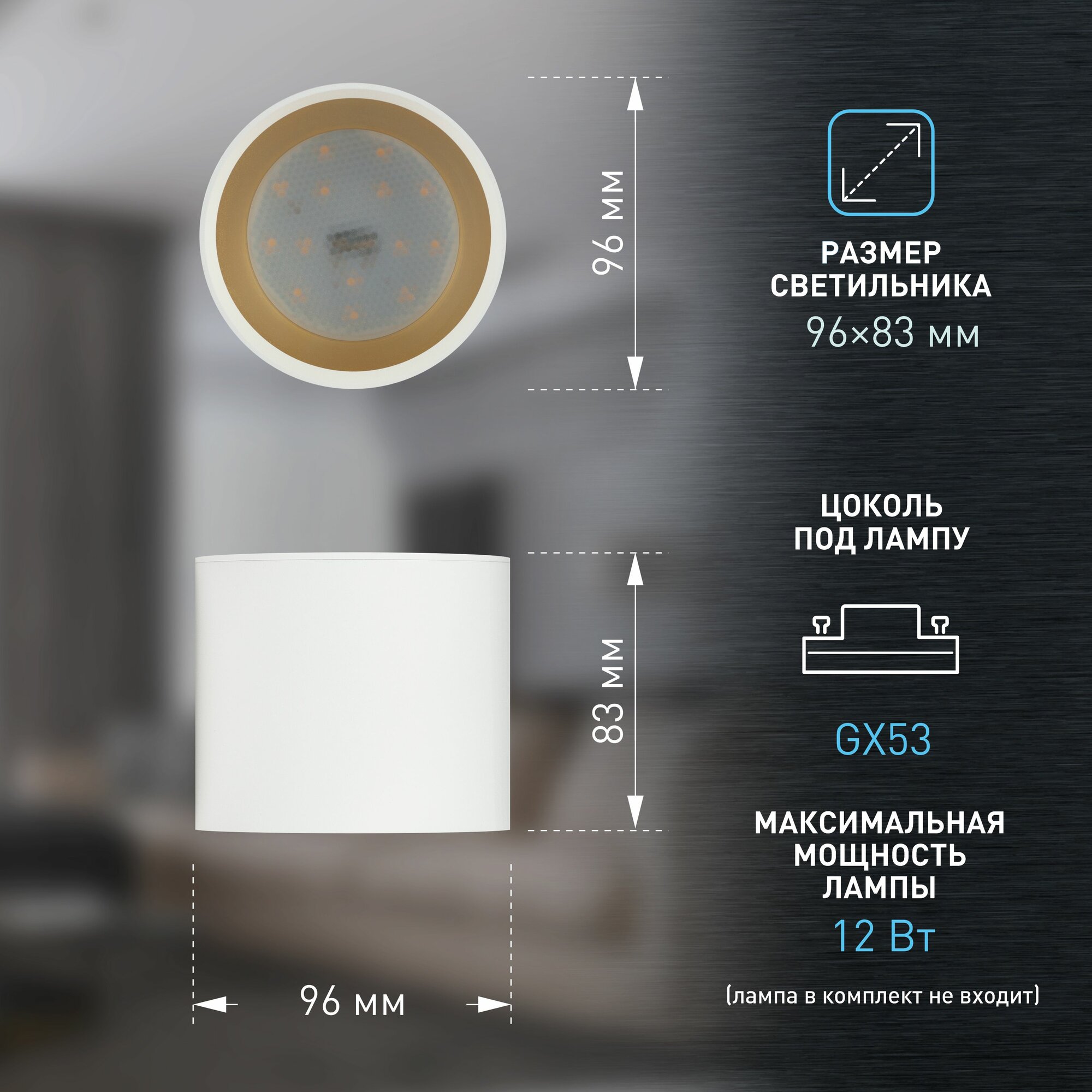 Накладной светильник под лампу Gx53, алюминий, ОЛ8, цвет белый