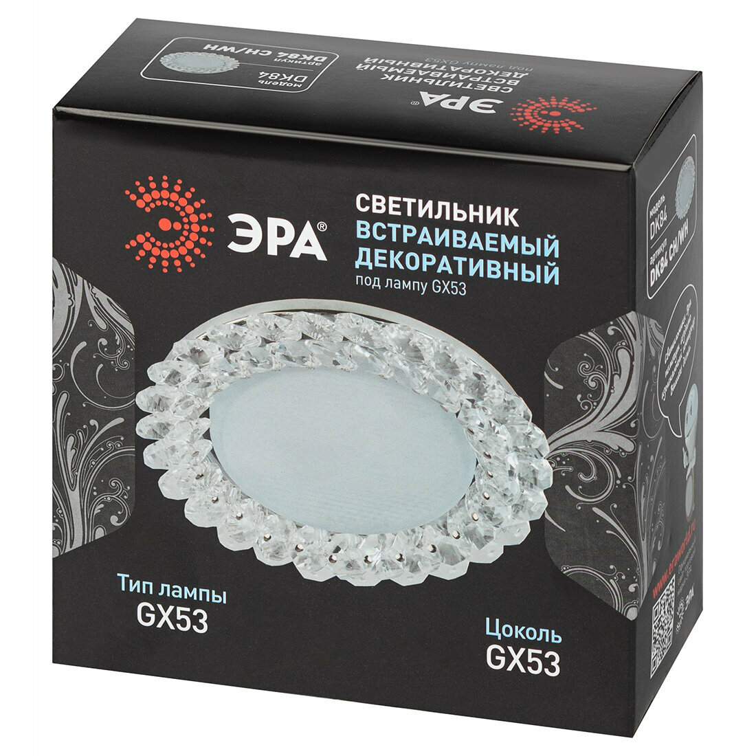 ЭРА DK84 Ch/wh Светильник под лампу Gx53, 220V,13W, хром/прозрачный Б0020573 .