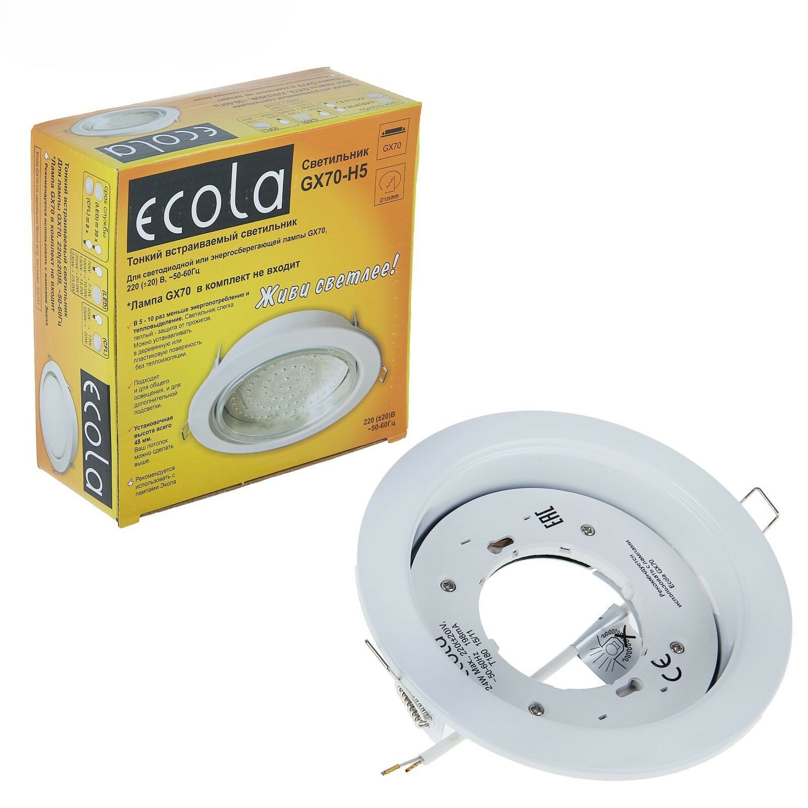 Светильник встраиваемый Ecola GX70-H5 Белый 53x151