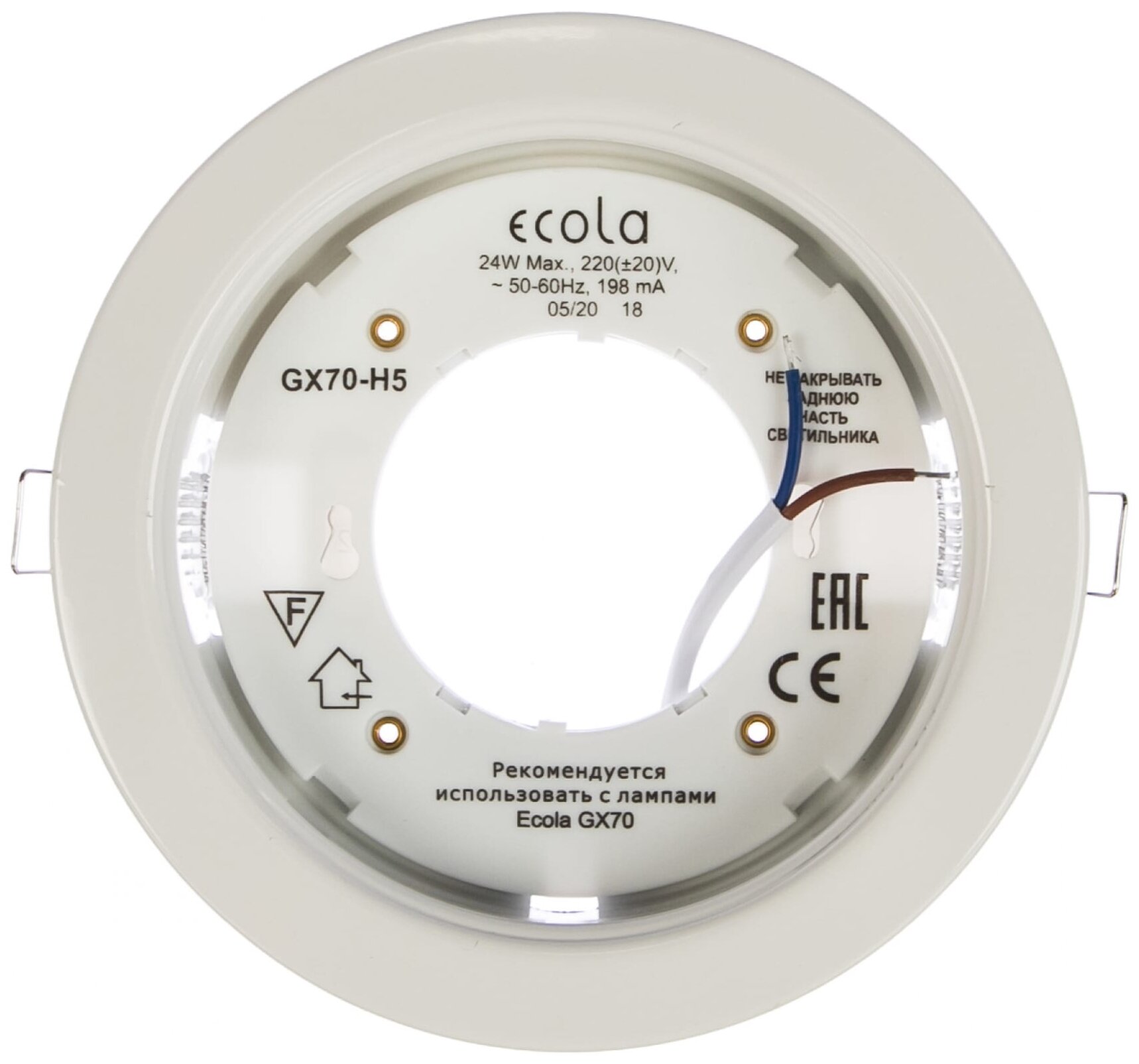 1 шт. Светильник встраиваемый Ecola GX70-H5 белый без рефлектора, без лампы