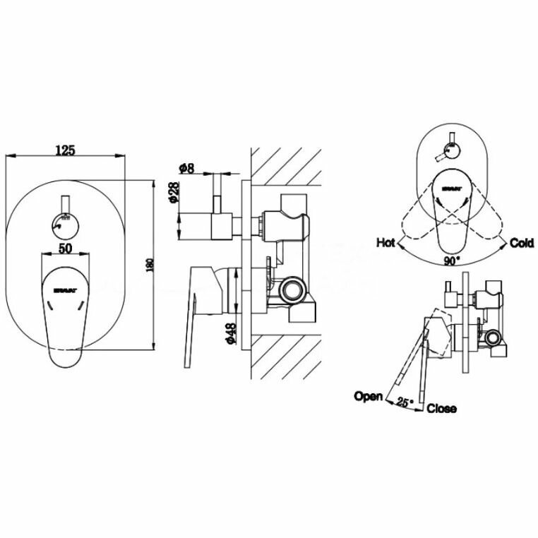 Смеситель Bravat Eler встраиваемый в стену, 2-функц., арт. FB848238CP-2-RUS